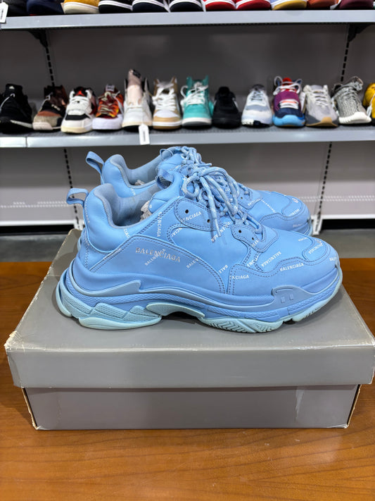 Preowned Balenciaga Allover Logo Triple S Blue Grey White
